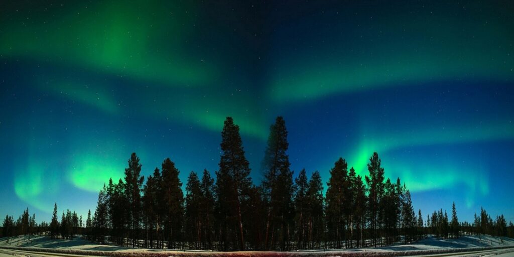 Aurora boreale dalla ski-roulotte, in Lapponia